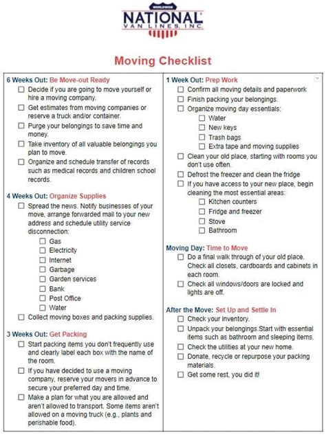 Local Moving Checklist - Find out when to hire a moving. Just refer to our change of address checklist. Use this comprehensive and customizable checklist to plan and organize your local move in 8, 6, and 4 weeks. It’s easier than you think: Go through each room and decide what to keep, sell, donate, or throw away.